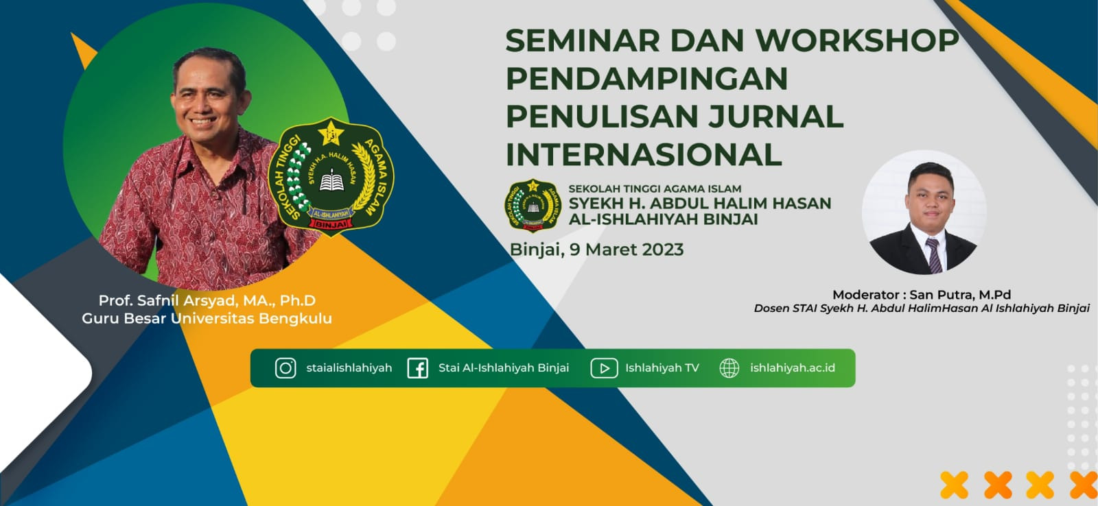 Binjai – Prof. Safnil Arsyad, M.A., Ph.D., Guru Besar Program Doktor Linguistik Terapan FKIP Universitas Bengkulu, menjadi narasumber utama dalam kegiatan Seminar dan Workshop Pendampingan Penulisan Jurnal Internasional yang diselenggarakan oleh Sekolah Tinggi Agama Islam (STAI) Syekh H. Abdul Halim Hasan Al-Ishlahiyah Binjai pada 9 Maret 2023.